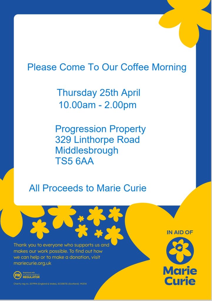 Please come to our coffee morning – all proceeds to Marie Curie